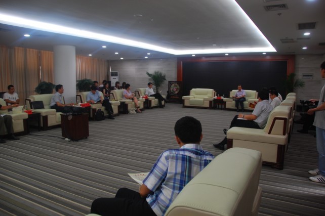 圖為:市演藝集團總經(jīng)理曹利衛(wèi)(左一)詳細介紹鹽城市歌舞劇院演出的《鹽之城·海之歌》晚會從策劃、創(chuàng)作、排練到演出整個創(chuàng)作過程和創(chuàng)作理念。                     |